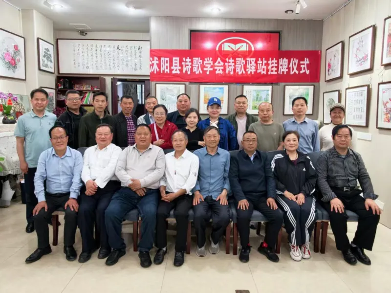 4月19日,沭阳县诗歌学会“诗歌驿站”挂牌仪式在沭阳书画名家艺术馆成功举办。县内外20余名诗人、诗歌爱好者参加了活动,共同见证这一美好时刻。