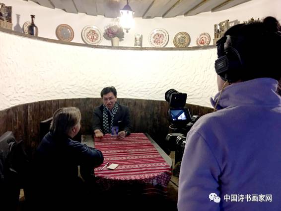 当地时间1月14日上午,部分与会诗人考察了已经被改为世俗文化活动场所的一座福音派教堂。11时,作为罗马尼亚比斯特里察国际诗歌节重要热身环节之一,来自中国、土耳其、新加坡、马来西亚和罗马尼亚的诗人一行十余人,在比斯特里察电视台演播大厅接受了新闻专访。此节目由诗歌节组委会主席、诗人翻译家Dorel Cosma先生主持,电视台资深主持人Zorin Diaconescu先生现场翻译。中国现代文学馆研究员、诗人北塔先生介绍了中国参会诗人北塔、邵建国、牛黄的诗歌风格和创作成就,得到各国诗人的赞誉。接着三人分别用中文朗诵了自己的诗作。其它国家诗人也都用本国语言朗诵了自己的诗歌。此时此刻,诗歌无国界,艺术自相通,大家在诗歌的海洋里遨游。