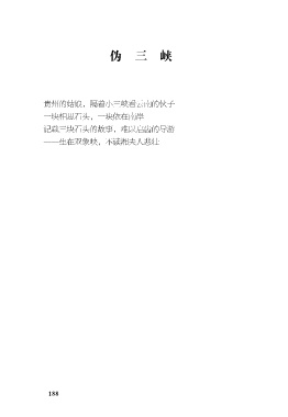 伪三峡 贵州的姑娘,隔着小三峡看云南的伙子 一块相思石头,一块依在南岸 记载三块石头的故事,难以启齿的导游 ——生在双象峡,不读湘夫人悲壮 188