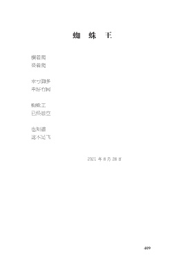 蜘蛛王 横着爬 竖着爬 幸亏脚多 幸好有网 蜘蛛王 已经悬空 也知道 这不是飞 2021 年 8 月 28 日 409