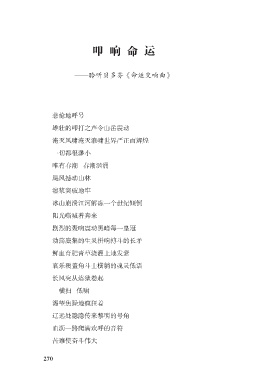 叩响命运 ——聆听贝多芬《命运交响曲》 悲怆地呼号 雄壮的叩打之声令山岳震动 淹灭风啸淹灭浪啸世界严正而辉煌 一切都很渺小 唯有春潮 春潮汹涌 飓风撼动山林 溶浆突破地牢 冰山崩溃江河解冻一个世纪倾倒 阳光嘶喊着奔来 剧烈的轰响震动黑暗每一皇冠 动荡麇集的生灵拼响搏斗的长矛 鲜血育肥青草浇灌土地发紫 哀乐覆盖角斗士横躺的魂灵低语 长风突从炼狱卷起 横扫 低啸 渴望焦躁地疯狂着 辽远处隐隐传来黎明的号角 血沥一路爬满欢呼的音符 苦难使奋斗伟大 270